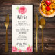 Une carte de menu avec roses aquarelle en haut et en bas et vos détails en lettres chic, parfait pour votre soirée Derby ou tout événement spécial. CORRESPONDANCE d'objets dans notre collection.