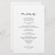 Conçue pour coordonner avec notre collection de mariages de script romantique, cette carte Menu personnalisable, dispose d'un texte de calligraphie de script balayé avec une police serif classe en noir avec un monogramme personnalisable sur le dos. Éléments correspondants disponibles.
