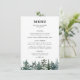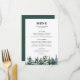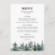 pin, pinède, aquarelle, rustique, bois, arbres à feuillage persistant, hiver, forêt, vert et blanc, menu mariage