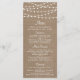 Simple mais élégant, les lampes à cordes de la collection rustique mariage burlap est un design étonnant avec de belles lumières à cordes blanches suspendues sur un arrière - plan effet burlap, qui est parfait pour toute célébration mariage rustique. Ces cartes de menu peuvent être personnalisées pour votre occasion spéciale et feraient le menu parfait pour votre mariage, douche nuptiale, fête de fiançailles, fête d'anniversaire et bien d'autres occasions spéciales. Ajoutez votre libellé personnalisé à cette conception à l'aide des cases "Modifier ce modèle de conception" situées à droite de l'élément, ou cliquez sur le bouton bleu "Customiser" pour arranger le texte, modifier les polices et les couleurs et ajouter des informations ou des images supplémentaires à cette conception. AFFICHER LES ÉLÉMENTS CORRESPONDANTS POUR CETTE COLLECTION