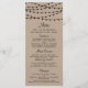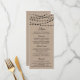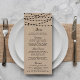 Simple mais élégant, les lampes à cordes de la collection rustique Kraft mariage est un design époustouflant avec de belles lumières à cordes blanches suspendues sur un arrière - plan à effet Kraft, qui est parfait pour toute célébration mariage rustique. Ces cartes de menu peuvent être personnalisées pour votre occasion spéciale et feraient le menu parfait pour votre mariage, douche nuptiale, fête de fiançailles, fête d'anniversaire et bien d'autres occasions spéciales. Ajoutez votre libellé personnalisé à cette conception à l'aide des cases "Modifier ce modèle de conception" situées à droite de l'élément, ou cliquez sur le bouton bleu "Customiser" pour arranger le texte, modifier les polices et les couleurs et ajouter des informations ou des images supplémentaires à cette conception. AFFICHER LES ÉLÉMENTS CORRESPONDANTS POUR CETTE COLLECTION