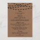 Simple mais élégant, les lampes à cordes de la collection rustique Kraft mariage est un design époustouflant avec de belles lumières à cordes blanches suspendues sur un arrière - plan à effet Kraft, qui est parfait pour toute célébration mariage rustique. Ces cartes de menu peuvent être personnalisées pour votre occasion spéciale et feraient le menu parfait pour votre mariage, douche nuptiale, fête de fiançailles, fête d'anniversaire et bien d'autres occasions spéciales. Ajoutez votre libellé personnalisé à cette conception à l'aide des cases "Modifier ce modèle de conception" situées à droite de l'élément, ou cliquez sur le bouton bleu "Customiser" pour arranger le texte, modifier les polices et les couleurs et ajouter des informations ou des images supplémentaires à cette conception. AFFICHER LES ÉLÉMENTS CORRESPONDANTS POUR CETTE COLLECTION