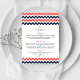 Simple mais élégante, la collection moderne chevron mariage est un design époustouflant avec un joli imprimé zig-zag bleu marine, corail et blanc, parfait pour toute célébration mariage moderne. Ces cartes de menu peuvent être personnalisées pour votre occasion spéciale et feraient le menu parfait pour votre mariage, douche nuptiale, fête de fiançailles, fête d'anniversaire et bien d'autres occasions spéciales. Ajoutez votre libellé personnalisé à cette conception à l'aide des cases "Modifier ce modèle de conception" situées à droite de l'élément, ou cliquez sur le bouton bleu "Customiser" pour arranger le texte, modifier les polices et les couleurs et ajouter des informations ou des images supplémentaires à cette conception.