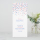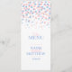 Confetti recto verso brisé points graphique mariage dîner menu en quartz rose rose, bleu sérénité sur un arrière - plan blanc. Si vous avez besoin d'aide pour adapter vos cours à ce menu, veuillez me contacter. © Art et design par Sarah Trett.