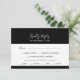 Cette carte RSVP de choix minimaliste de coordonnées noires est parfaite pour un mariage moderne. L'élégant design boho sophistiqué présente un noir foncé solide et une atmosphère bohème moderne. Coordonnées avec la collection Moody Purple Blooms de Fresh & Yummy Paperie. Cette carte de réponse mariage demande aux clients quel repas ils souhaitent à la réception.