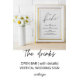 Pancarte de mariage bar ouvert - La conception est basée sur la simplicité de l'écriture noire et blanche. Si vous avez besoin de plus, n'hésitez pas à me contacter : szdesigns2021@gmail.com