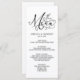 Ce menu élégant présente une typographie noire fantaisiste sur un arrière - plan blanc. Vous pouvez ajouter vos détails dans le menu personnaliser. Ce menu fait partie d'une belle suite mariage assortie qui peut être entièrement personnalisée.