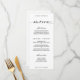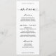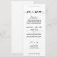 Un menu de dîner classique proposant des sélections d'entrées, de plats principaux et de desserts. Les titres sont écrits dans une calligraphie de police cursive noire classique et les sélections de menu sont dans un texte bloc facile à lire. Le menu est entièrement personnalisable pour toute occasion.