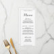 Un menu de dîner classique proposant des sélections d'entrées, de plats principaux et de desserts. Les titres sont écrits dans une calligraphie classique de police cursive noire et les sélections de menu sont dans un texte bloc facile à lire. Le menu est entièrement personnalisable pour toute occasion.