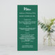 carte de menu de dîner de fête de Noël. Personnalisez et ajoutez un nom/événement, une date et le menu. Un fond vert, un texte blanc.