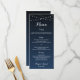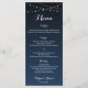Carte de menu de dîner de mariage avec un design de nuit étoilée.
