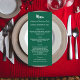 carte de menu de dîner de fête de Noël. Personnalisez et ajoutez un nom/événement, une date et le menu. Un fond vert, texte blanc.