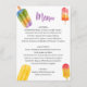 Summer Popsicle Baby Shower Menu Cette carte de menu Baby Shower vient compléter ma jolie collection "Popsicle Ice Cream Summer Party" Baby Shower. Vous trouverez l'Invitation, les Inserts, les Signes et les articles correspondants dans ma boutique Zazzle.
