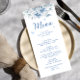 Menu de Fête des mariées Florale bleu et blanc chi