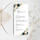 Menu de la cérémonie de Mariage Floral Marine & Blush Pink. Cette invitation à la douche de mariage élégante et élégante présente de magnifiques peintures à la main Navy & Blush Pink Floral. Trouvez les articles correspondants dans la collection Florale Marine & Blush Pink.