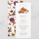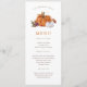 Menu de la citrouille de Thanksgiving. Ce menu de dîner de Thanksgiving à la citrouille automnal élégant et mignon présente de belles citrouilles orange brûlé et blanches à l'aquarelle et des florales automnales avec un motif fantaisiste au verso.