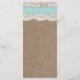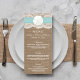 La collection de mariage de plage de sable turquoise dollar est un design époustouflant avec un bel arrière - plan rustique effet burlap avec un habillage romantique vintage effet dentelle blanche terminé avec un dollar de sable étonnant et ruban turquoise. Ces cartes de menu peuvent être personnalisées pour votre occasion spéciale et rendraient le modèle parfait pour les menus mariages, les menus de douche nuptiale, les menus de fiançailles, les menus de fête d'anniversaire et bien plus encore. *Veuillez noter que Zazzle ne vend que des produits imprimés, de sorte que cet article n'a pas de véritables boucles, dentelles, dollars de sable ou rubans.