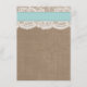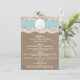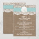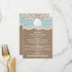 La collection de mariage de plage de sable turquoise dollar est un design époustouflant avec un bel arrière - plan rustique effet burlap avec un habillage romantique vintage effet dentelle blanche terminé avec un dollar de sable étonnant et ruban turquoise. Ces cartes de menu peuvent être personnalisées pour votre occasion spéciale et rendraient le modèle parfait pour les menus mariages, les menus de douche nuptiale, les menus de fiançailles, les menus de fête d'anniversaire et bien plus encore. *Veuillez noter que Zazzle ne vend que des produits imprimés, de sorte que cet article n'a pas de véritables boucles, dentelles, dollars de sable ou rubans.