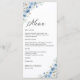 Dusty Blue Ivory Floral Mariage Menu. Cette invitation à la douche de mariage élégante et élégante présente de magnifiques aquarelles peintes à la main de la couleur bleu outrepasse. Trouvez les articles correspondants dans la collection florale d'ivoire bleu Dusty.
