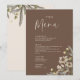 Menu de mariage botanique beige bohème