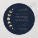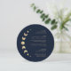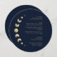 Transformez votre expérience culinaire avec la carte de menu "Blue Moon Circle Wedding Menu Card", sur fond bleu foncé. Les éléments célestes dorés, accompagnés d'initiales élégamment simples personnalisables, apportent une touche de magie à vos tables. Les phases de lune délicatement intégrées dans le design augmentent l'expérience culinaire, symbolisant les parcours variés de votre célébration céleste.
