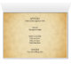 Une conception de menu de mariage avec une conception imprimée d'arrière - plan dans le style du vieux papier vintage, conçu pour regarder semblable à un motif de parchemin de faux. L'arrière - plan est une copie de motif dans couleurs beiges/bronzages jaunâtres. Il y a un texte noir élégant qui peut être personnalisé.
