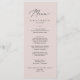 Ce menu de mariage élégant rose pâle et coordonné est parfait pour un mariage moderne. Le design simple et classique présente une calligraphie rose pastel et délicate, au style minimaliste et élégant. Ce menu peut être utilisé pour une réception de mariage, un dîner de répétition ou tout événement.