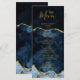 Design de géode dorée en marbre d'agate aquarelle bleu marine et feuille d'or, avec des polices modernes et script. Menu de dîner de mariage ou de tout événement tendance et chic ! ~ Consultez ma boutique pour voir l'ensemble de la suite de mariage pour ce design !
