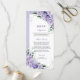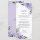 Personnalisez facilement et rapidement ce modèle de carte de menu mince en argent avec fleurs de lilas violet et roses lavande recto-verso, en cliquant simplement sur le bouton Modifier à l'aide des outils de conception pour modifier le texte, la formulation, le style de police, la taille de police, la couleur de police, ajouter plus de texte, déplacer ou supprimer des images. Personnalisez-le pour l'adapter à votre occasion. Parfait pour les mariages, les douches de mariée, les Quinceañeras, les 16 ans, les 18 ans, les Bat Mitzvah, les bals de débutante, les baptêmes et plus encore ! Articles assortis disponibles en magasin ! (c) Ever After Wedding