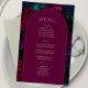 Menu de mariage chic aux tons de bijoux floral bordeaux et marine. Ajoutez une touche d'élégance à votre réception avec ce menu de mariage chic aux tons de bijoux floraux. Doté d'une palette sophistiquée de floraux bordeaux, marine, fuchsia, magenta, turquoise et violet, ce design complète parfaitement un thème de mariage riche et romantique. La typographie élégante et la mise en page moderne mettent en valeur chaque plat avec grâce et clarté, assurant à vos invités une expérience culinaire fluide. Parfait pour les mariages d'automne, d'hiver ou de soirée, cette carte de menu est à la fois un ajout pratique et décoratif à votre décor de table.
