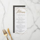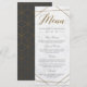 Créez vos propres cartes de menu de mariage modernes en marbre Art Déco géométrique or personnalisées avec ces modèles faciles à utiliser de WowWed. Ces cartes de menu géométriques présentent une calligraphie dorée fausse, un fond en marbre blanc et une typographie élégante. Au verso, il y a un motif géométrique doré sur fond gris.