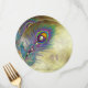 De beaux menus de mariage de paon de couleur lavande violette et de sarcelle bleue. Ce menu de mariage de paon bleu sarcelle élégant est facilement personnalisable pour votre événement avec votre choix de style de police, de couleur et de formulation sur le recto et le verso. Il s'agit d'une conception graphique imprimée sans véritables pierres précieuses, bijoux, etc. Ce design de menu rond de 5,25 pouces est élégamment posé sur l'assiette !
