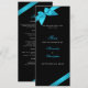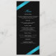 4" x 9.25" Ruban turquoise sur fond noir. Élégant modèle de menu de mariage entièrement personnalisable.