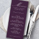 Carte de menu de mariage personnalisée. Design simple, classique et élégant en violet pour coordonner avec vos couleurs de mariage (veuillez parcourir ma boutique pour des couleurs alternatives ou cliquer sur "personnaliser davantage" et changer la couleur de fond pour convenir). Le modèle est prêt pour que vous ajoutiez les noms des mariés, la date du mariage et votre menu.