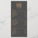 Ce menu de style moderne et moody attire l'attention dans n'importe quelle boulangerie, pâtisserie ou petit café. Il pourrait également être utilisé comme carte de menu de prospectus à envoyer aux clients. Il comprend un espace pour votre image de marque, trois sections de produits et de prix, des heures d'ouverture et une section supplémentaire pour d'autres informations commerciales sur le côté arrière.