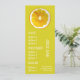 Un modèle de menu coloré et mignon pour un bar à boissons, un bar à jus ou une boutique d'aliments santé. Ce menu mignon a une illustration d'art originale adorable de Sacha Grossel représentant une tranche de citron avec un thème d'agrumes sur un fond personnalisable vert lime et jaune. Le texte peut être personnalisé pour répondre à vos besoins.