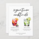 Cette feuille de menu chic des cocktails signature présente une typographie noire simple au-dessus de 2 boissons et de leurs ingrédients pour votre bar de mariage. Un joli dessin de Sangria d'été et de Gin and Tonic ajoute une touche cool à votre menu de bar. Complet avec les noms des mariés et la date de leur réception.
