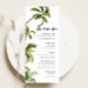 Les cartes de menu de mariage Tropical Palm Trees sont un choix parfait pour les couples qui aiment le soleil, la mer et le sable. Le design tropical présente une végétation luxuriante, des fleurs exotiques et une touche d'éléments de plage, tels que des palmiers et des coquillages. Nos menus sont le moyen idéal pour annoncer votre jour de mariage à vos invités. Imprimés sur du papier cartonné de haute qualité, ils impressionneront certainement vos invités et donneront le ton pour votre journée spéciale. Notre collection de mariage comprend tout ce dont vous avez besoin pour rendre votre journée vraiment inoubliable.