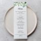 Menu Dîner de calligraphie botanique Eucalyptus vert