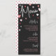 Menu de la Saint-Valentin en noir mat avec un motif de cœur joli et une écriture moderne en blanc, gris foncé et nuances de rose. Menu de mariage romantique en rose avec beaucoup de cœurs.