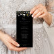 Cette carte de menu à la folle couleur florale noire est parfaite pour un mariage rustique. Le design est composé de fleurs élégantes rose aquarelle, rousse, violette, marine et blanche avec des feuilles vert émeraude dans un arrière - plan foncé. Ce menu peut être utilisé pour une réception de mariage, un dîner de répétition, une douche nuptiale ou tout événement.