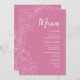 Carte du menu du dîner à fleurs roses. Design moderne élégant avec accents de dessin botanique et police de script de typographie. Carte de menu à plat branché 5x7 parfaite pour une célébration élégante.
