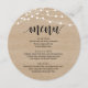 Bois Brown rustique moderne, Lumières à cordes, Formes de Plaques Rondes, Menu Dîner Étage Mariage. Un menu de bar parfait pour votre grand jour. Vous pouvez modifier les couleurs de police du script et le contenu et les polices du menu pour répondre à vos besoins.
