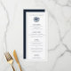 Menu classique marine et dîner blanc avec illustration vintage coque de mer. Parfait pour un mariage élégant de plage ou de club de yacht ou autre événement spécial. L'aménagement est prévu pour un repas de 4 plats. Cliquez sur "customisez-le" pour ajouter du texte ou supprimer des éléments tels que l'illustration du shell.