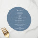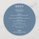 Une carte de menu ronde sur le bleu ardoise (ou n'importe quelle couleur) et le lettrage chic en blanc affiche vos choix de menu. Parfait pour une réception de mariage moderne, un dîner de répétition mariage, une fête d'anniversaire ou tout événement spécial avec un dîner assis. Choisissez N'IMPORTE QUEL ARRIÈRE - PLAN DE COULEUR, N'IMPORTE QUEL TEXTE DE COULEUR, N'IMPORTE QUELLE POLICE ! Personnalisez facilement votre menu et vos détails pour le dîner.