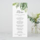 Cette carte de menu mariage de palmiers tropicaux sauvage est parfaite pour un mariage sur la plage ou à destination. Le design comprend un éventail exotique de feuilles de bananiers d'aquarelle verte, fougères, feuillage, plantes botaniques et verdure pour une sensation tropicale estivale. Ce menu peut être utilisé pour une réception de mariage, un dîner de répétition ou tout événement.