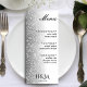 Carte de menu Ombre blanc et gris argent parties scintillant mariage de réception avec texte noir. Une typographie élégante pour un regard cher à un prix abordable. Customisez la liste des repas et les détails personnels. Idéal pour un thème girly ou whimsical / majestueux mariage.