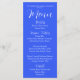 Style simple, carte de menu de dîner bleu royal pour votre mariage qui comprend un script blanc et stylisé avec vos informations personnalisées. Modifiez la carte de menu et remplacez le nom et la date du mariage ainsi que les éléments du menu qui seront servis à la réception de votre mariage. Sélectionnez votre style de carte de menu selon vos besoins.