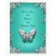Menu Dinner Card Silver Turquoise Blue Butterfly