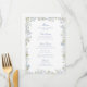 Menu élégant de douche de mariée, orné d'un superbe cadre floral bleu doux et d'une calligraphie classique. La calligraphie intemporelle ajoute une touche personnelle au menu qui est à la fois romantique et enchanteur.